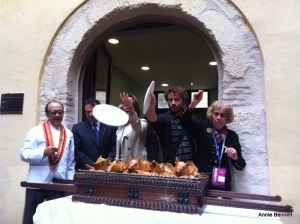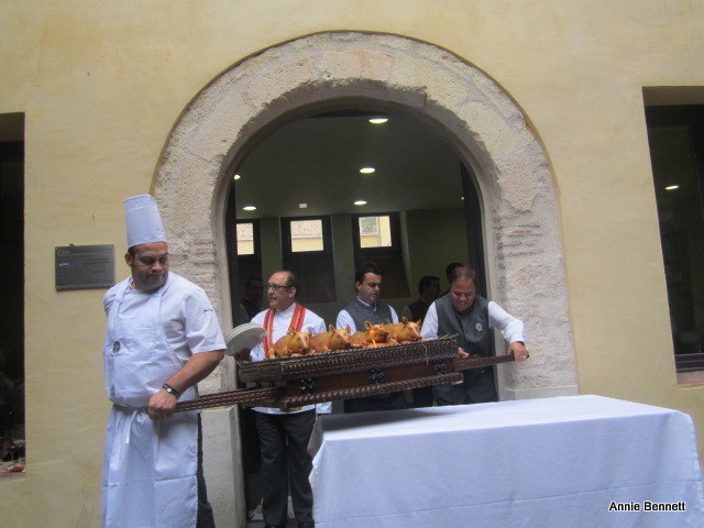 The Palacio de Quintanar hosts all sorts of events during the festival. Built in the 15th century, it is now a cultural centre all year round and is used for design and photography courses. The courtyard was the venue for the lunch of roast suckling pig provided every year by José María, one of Segovia’s best restaurants. The cochinillos were ceremoniously carried out by the waiters and several of the key figures appearing at the festival were invited to cut the meat with the side of a plate then smash the plate to the ground. Those granted the honour of carrying out the ritual this year were bestselling author María Dueñas, Revel Guest, producer of War Horse and also chair of the Hay Festival Foundation, and the designer of the Olympic cauldron, Thomas Heatherwick.