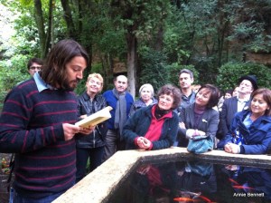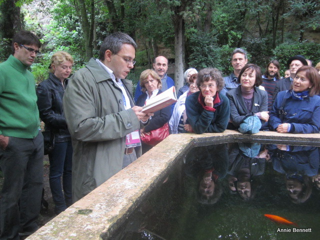 On a Saturday afternoon at the end of September, with autumn already in the air, we gathered around the raised goldfish pond in the Hispano-Islamic part of the garden. There were 60 or 70 of us, from all over the world, surrounded by the lush foliage provided by quince and pear trees, with the soothing sound of water gently trickling all around in the channels that Silva created throughout his garden.