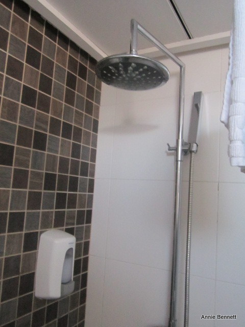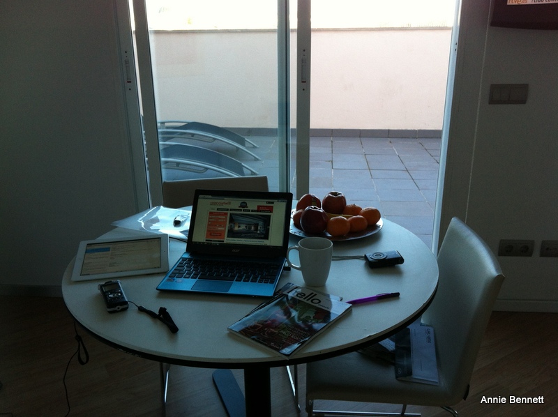 There is a separate bedroom, which also gives onto the terrace, and a decent bathroom with rose and handheld showerheads. Wifi is free with a good signal, but you have to sign in with separate usernames and passwords for each device. It is a really comfortable place to work undisturbed, and of course an unlimited suppy of coffee and biscuits helps things along tremendously. And it was quiet, with very little street noise. You can hear people talking in the corridor, and doors opening and closing, but it’s not too intrusive.