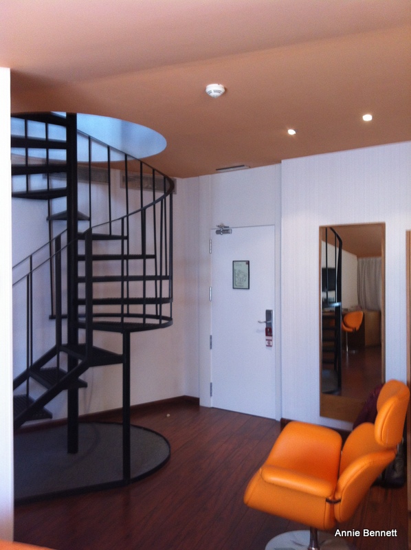 Back down in the very roomy room, I took in the crisp orange-and-white décor with stylish Arne Jacobsen-style chairs. As is usual in Petit Palace hotels, there was a laptop on the desk – wifi is free but the signal wasn’t great in this particular room. There was an exercise bike too – also standard in superior rooms in this chain – but you will not be surprised to read that I didn’t get around to trying it out.