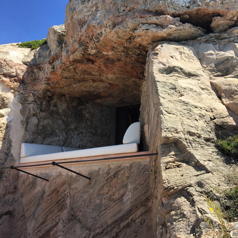 June 8, 2015 A sneak peek of the new Sentinel suites at Cap Rocat in Mallorca 800 × 800 Day bed in the rock, Sentinel suite, Cap Rocat